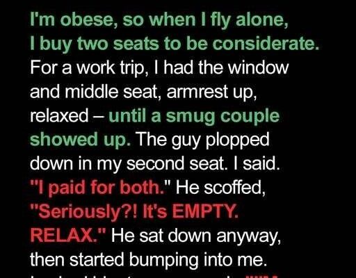 They had stolen my seat, but I had given them a memorable flight. It was a petty act, I admit, but sometimes, a little bit of well-deserved turbulence is exactly what entitlement needs.